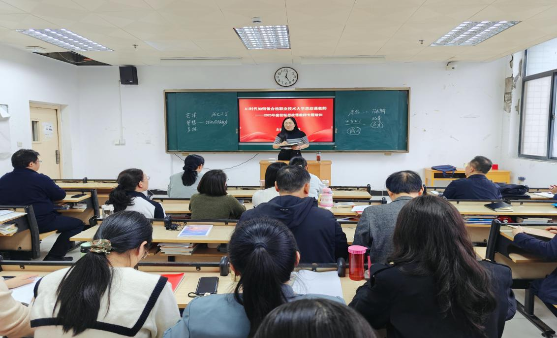 为主动应对人工智能技术给思想政治教育带来的机遇与挑战,切实提升思政课教师的数字素养与育人能力,9月23日下午,太阳成tyc7111cc集团特邀学校党委委员、副校长周有国作题为“AI时代如何做合格职业技术大学思政课教师”的专题报告。院长祁欢主持报告会,全体思政课教师参会。