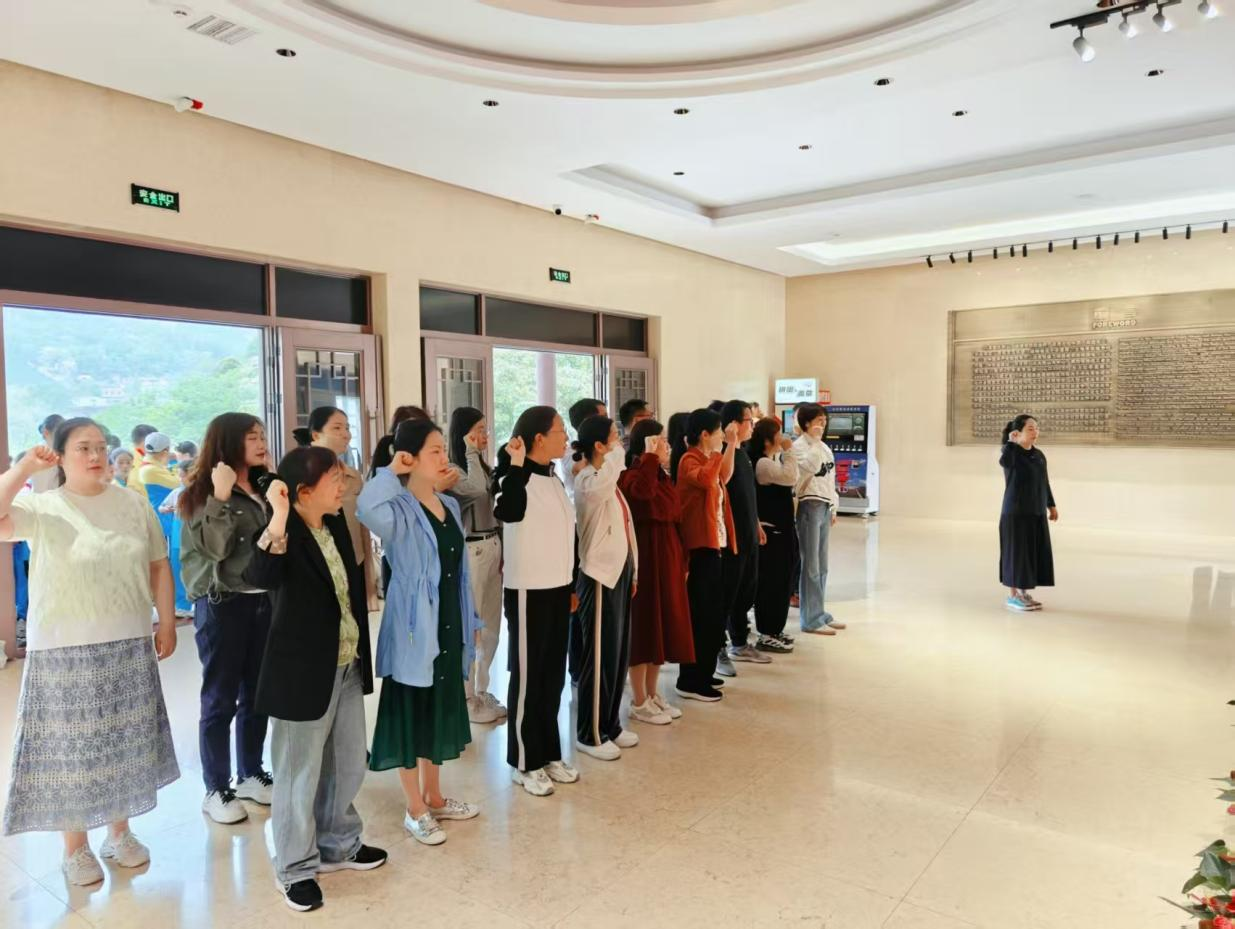 参观完毕后,全体教师怀着崇敬的心情,庄严地举起右手,紧紧握拳,在鲜艳的党旗下重温入党誓词,感受红色血脉给心灵带来的震撼与洗涤。