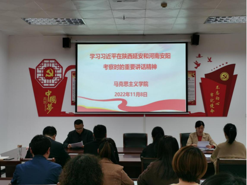 会议传达了《习近平在陕西延安和河南安阳考察时的重要讲话精神》、《习近平在瞻仰延安革命纪念地时的重要讲话精神》、《中共中央关于认真学习宣传贯彻党的二十大精神的决定》等文件精神。郑玉秀强调,新时代新征程,我们更要大力弘扬延安精神和红旗渠精神,继承和发扬优良传统,将共产党人精神谱系融入思政教学,谱写新时代我院更加出彩的新篇章。