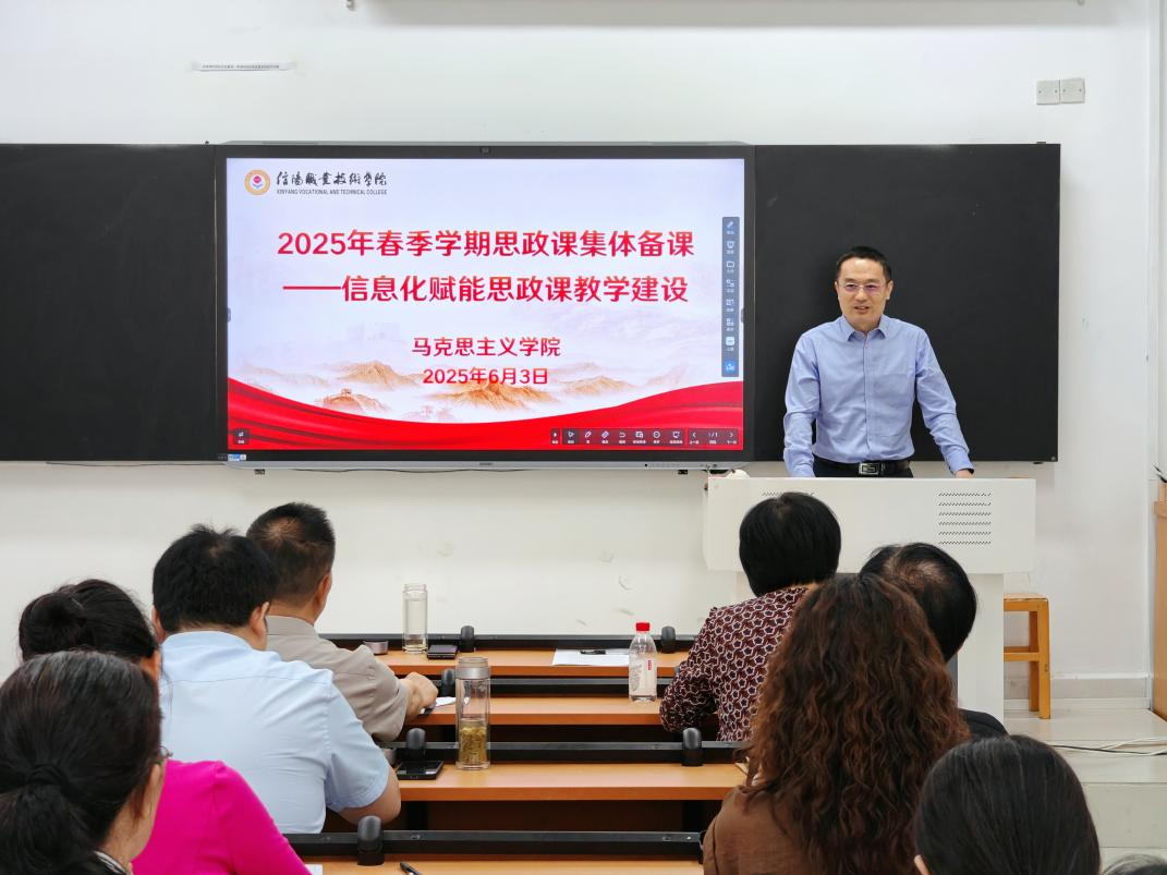 为深入贯彻落实习近平总书记对学校思政课建设的重要指示,全面落实党的二十大和二十届二中、三中全会精神,切实提高思政课的针对性和吸引力,6月3日下午,太阳成tyc7111cc集团举行了2025年春季学期思政课集体备课会,校长李森、副校长郑延芳、周有国等校领导莅临指导,校办主任吴明慧出席。备课会由马院教师陈思主持,全体思政课教师参会。