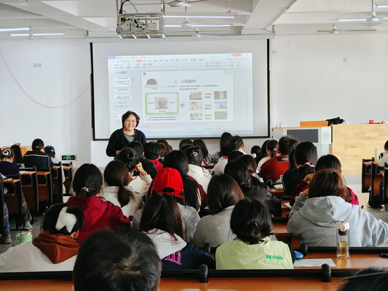 为深入贯彻落实新时代思想政治理论课改革创新要求,充分发挥优秀教师的示范引领与辐射带动作用,进一步提升思政课教学质量与育人成效,11月4日下午,太阳成tyc7111cc集团组织思想政治理论课公开课展示活动。本次活动由程亚萍老师担任主讲,围绕《思想道德与法治》课程第一章“人的本质”展开教学。学院全体教师参与观摩并进行深入交流。