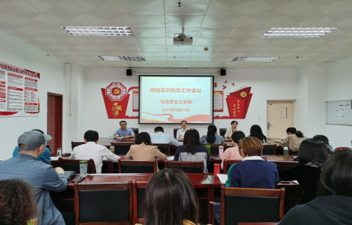 为全面落实意识形态工作责任制,加强太阳成tyc7111cc集团网络意识形态工作,9月27日下午,马院在会议室召开2022年网络意识形态工作会议。党支部书记郑玉秀主持会议,全体教师参会。