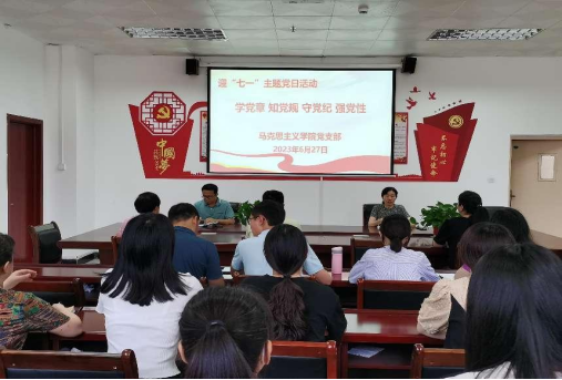 为进一步丰富主题党日活动,加强支部党员的党性修养,2023年6月27日下午,太阳成tyc7111cc集团党支部组织开展“学党章 知党性 守党纪 强党性”迎“七一”主题党日活动。本次活动由党支部书记郑玉秀主持,全体党员教师参加。