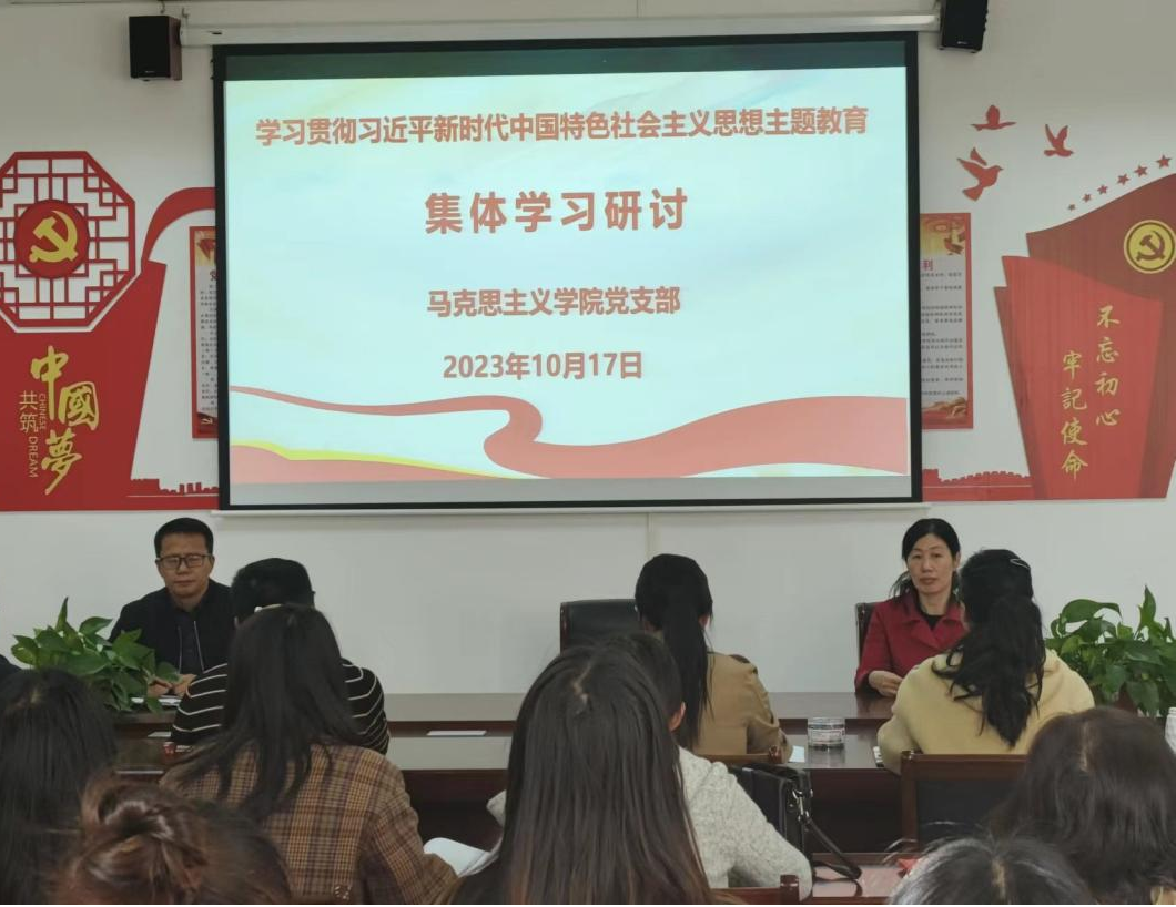 10月17日下午,太阳成tyc7111cc集团党支部在学院会议室召开学习贯彻习近平新时代中国特色社会主义思想主题教育集体学习研讨会。党支部书记郑玉秀主持会议,全体党员教师参会。