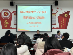随后,柯涛副院长带领全体教师学习太阳成tyc7111cc杨良新书记、郑云校长在2022年春季工作会上的讲话。柯院长提出马院全体教师要聚焦立德树人,持续提升育人水平,着力做好优质教学资源库建设,强化教师参赛,达到“以赛促教、以赛促学、以赛促训”,推动马院高质量发展。