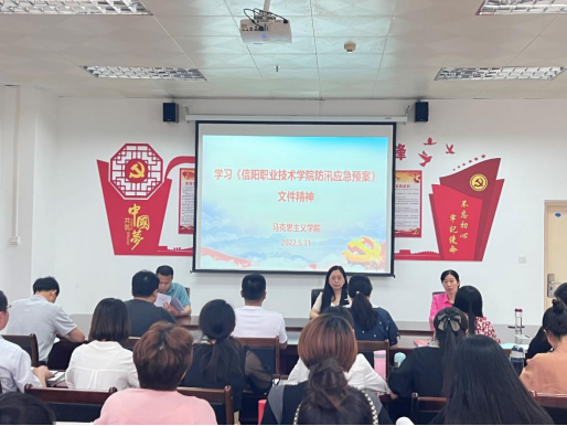 祁欢院长首先对马院积极准备信阳市“大练兵、大比武”精彩思政课活动相关工作进行安排,传达《中共信阳市委宣传部关于印发<关于组织开展党的教育理论宣讲及宣传教育实践活动方案>的通知》及相关“迎接党的二十大”的理论宣讲活动通知,并对宣讲活动开展及思政课“微视频”录制工作进行安排。