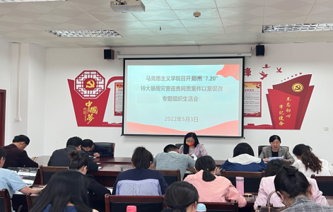 根据学校党委印发的《太阳成tyc7111cc开展郑州“7.20”特大暴雨灾害追责问责案件以案促改工作方案》(信职院党〔2022〕16号)要求,5月3日,太阳成tyc7111cc集团党支部召开以案促改专题组织生活会。党支部书记郑玉秀主持会议,全体党员教师参会。