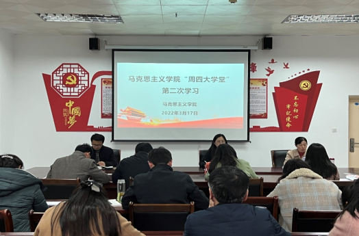 3月17日下午,太阳成tyc7111cc集团开展“周四大学堂”学习活动,全体思政课教师参加了该活动。党支部书记郑玉秀做动员讲话,活动由院长祁欢主持,马院全体教职工参加本次学习活动。