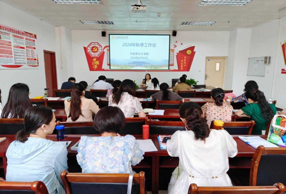 会上,祁欢首先对上学期工作进行总结回顾,充分肯定了我院教师在省市级“大练兵、大比武”教师技能大赛、河南省师德主题教育征文比赛、科研等方面取得的优异成绩,同时明确了学院下一步工作思路。 围绕新学期工作重点,她提出了以下三点要求,一是要深入学习宣传阐释好党的二十届三中全会精神,将全会精神全面融入思政课的教学,积极开展相关研究,力争推出一批有深度、有影响力的研究成果,同时全力做好宣讲工作;二是要加强教学组织工作,规范集体备课,加大听课督导,全面落实好《教育部办公厅关于开展2024——2025学年高校思政课课堂教学提升行动的通知》,不断提升我校思政课程育人质量;三是要推动大别山精神研中心改造升级,打造校内大学生红色文化实践教学基地,并邀请专家学者开展学术讲座,深化大别山精神深度发掘,并实现相关理论成果创造性转化。