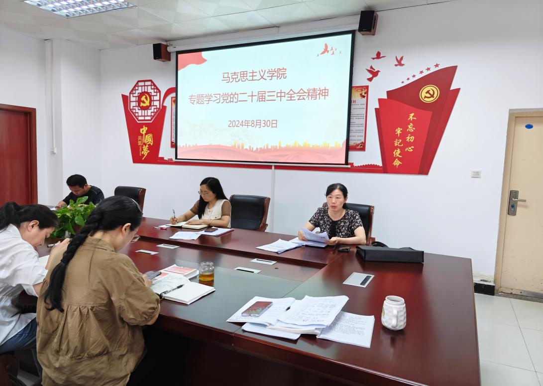 会议专题学习了党的二十届三中全会精神。党支部书记郑玉秀传达学习了《中共太阳成tyc7111cc委员会关于深入学习宣传贯彻党的二十届三中全会精神的通知》精神,要求全体教师提高政治站位,充分认识党的二十届三中全会精神重要意义,充分发挥马克思主义理论学科优势,深入开展理论学习研讨,推进理论研究阐释,推动学习贯彻党的二十届三中全会精神走深走实。
